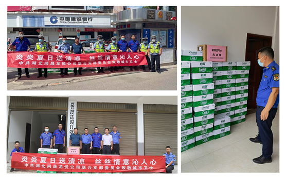 8月4日,湖北同晟龍悅公司聯(lián)合黨支部書記任永斌帶領(lǐng)職工代表,先后到黃梅縣交警大隊(duì)、城管執(zhí)法大隊(duì),為一線干警和城市守護(hù)者送去礦泉水、藿香正氣水等防暑用品,表達(dá)企業(yè)的慰問之情。 黃梅縣交警大隊(duì)陳建忠隊(duì)長表示 ...