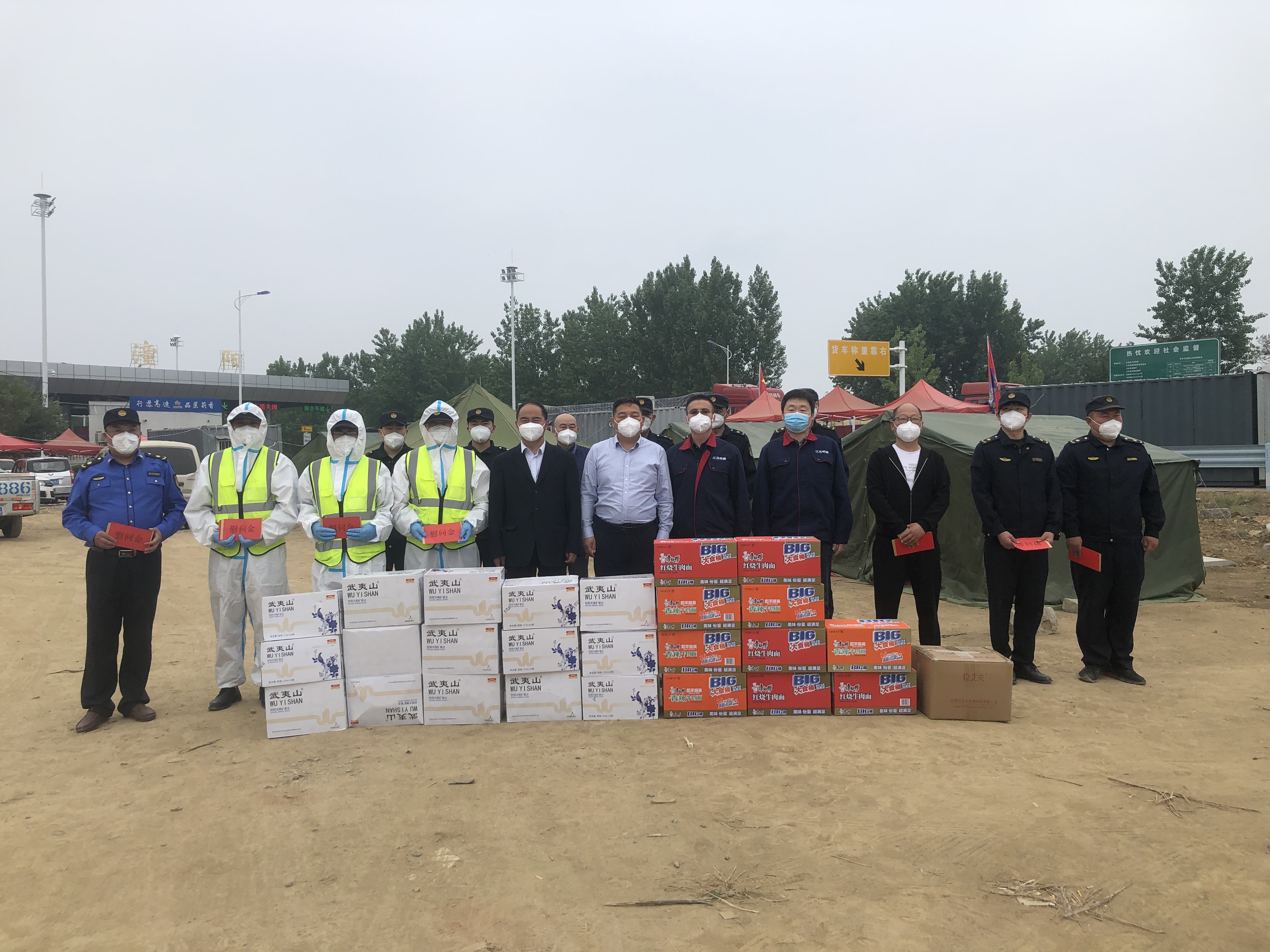 近日,江蘇明湖公司看望慰問(wèn)沭陽(yáng)京滬高速潼陽(yáng)卡口交通防控執(zhí)勤點(diǎn)值守人員,并送上慰問(wèn)品,助力疫情防控工作。沭陽(yáng)縣城管局局長(zhǎng)李蘭軍、副局長(zhǎng)任揚(yáng),江蘇明湖董事長(zhǎng)劉國(guó)峰、副經(jīng)理張海龍參加慰問(wèn)活動(dòng)。