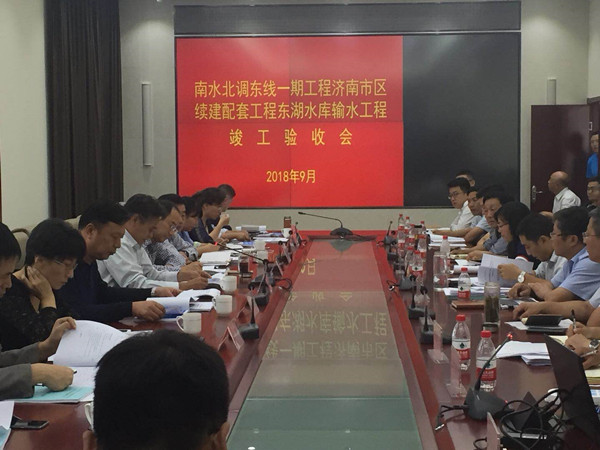 2018年9月29日,濟南市南水北調(diào)建設(shè)管理局主持召開了南水北調(diào)濟南市市區(qū)續(xù)建配套工程東湖水庫輸水工程竣工驗收會議。項目法人、勘測設(shè)計、監(jiān)理、施工、跟蹤審計、質(zhì)量檢測、主要材料及設(shè)備供應(yīng)商、運行管理等單位負(fù) ...