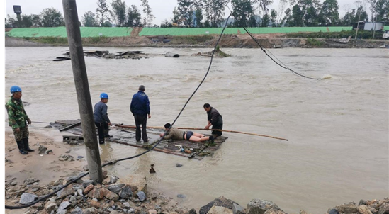 2021年4月25日上午8時,公司承建的通城縣城區(qū)河道生態(tài)治理PPP項目水利工程項目駐地一村民于雋水河劃乘竹筏涉水,因河水湍急,不慎落水,命懸一線,千鈞一發(fā)之際,項目部巡查人員發(fā)現后立即撥打110報警電話,并及時組織工地現場施工人員和當地村民對落水人員進行營救。