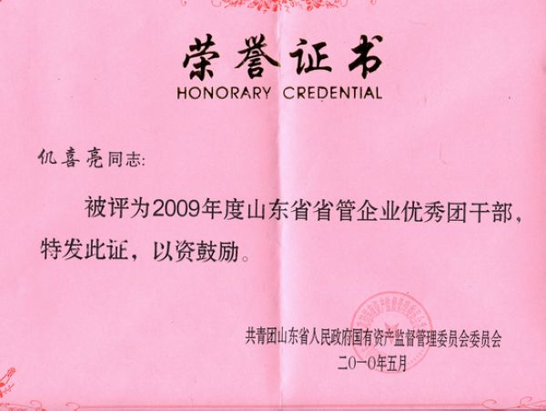 經(jīng)省國投公司團(tuán)委、黨委推報,省國資委團(tuán)委評定,局團(tuán)委書記仉喜亮在2010年省管企業(yè)“五四”評先樹優(yōu)活動中被評選為優(yōu)秀團(tuán)干部。